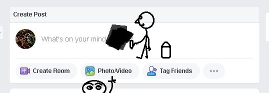 mine in the news feed, looks as below, without the stick man that has used the paint roller to wipe out my name, and the guy below pointing up at the button to upload a file