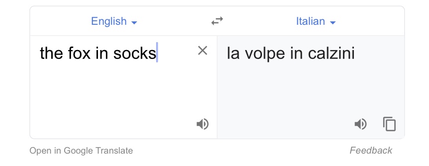 So I thought of childrens books. But then suddenly realised that childrens books don’t translate. In particular the Dr Seuss books don’t translate. Fox in socks wouldn’t rhyme any more. Green eggs and ham you couldn’t rhyme boat with coat. So how are these books translated into foreign languages? Or do children in other countries have to go without?