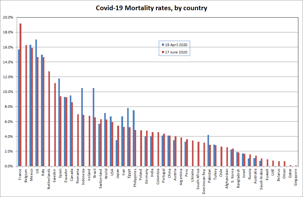 The fact that all but one of the highest numbers are from W Europe suggests that it is not just a matter of how the countries responded to the virus.