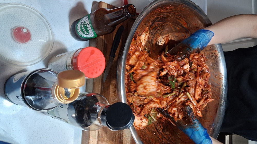 For MV…daughter-in-law making kimchi. She said it’s a top secret recipe, but when she comes to visit you she’ll show you how it is made 😆Photos are skewiff, pardon me.