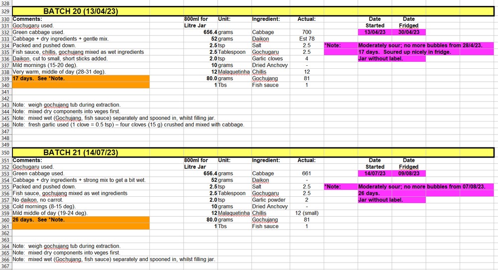 This was scaled down from my early goes which used lots of cabbage. You can scale it for whatever jar you use. Currently I’m using plastic 1 litre Chinese-made Kimchi Jars. I make enough mixture to fill the jars about 80%