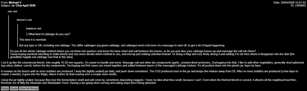 I’d better make some more. I realise on checking my notes, that I haven’t made any Kimchi since before Matthew died. I probably haven’t done much of anything since Matthew died.