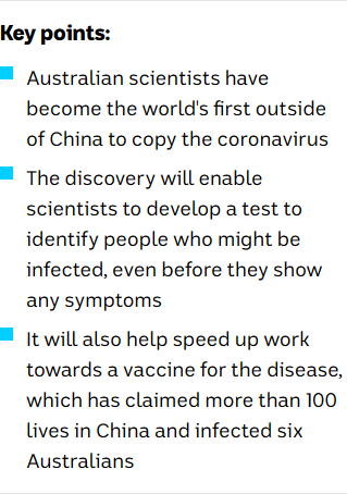 SCIENCE said:https://www.abc.net.au/news/2020-01-24/coronavirus-vaccine-work-starts-with-queensland-researchers/11896346