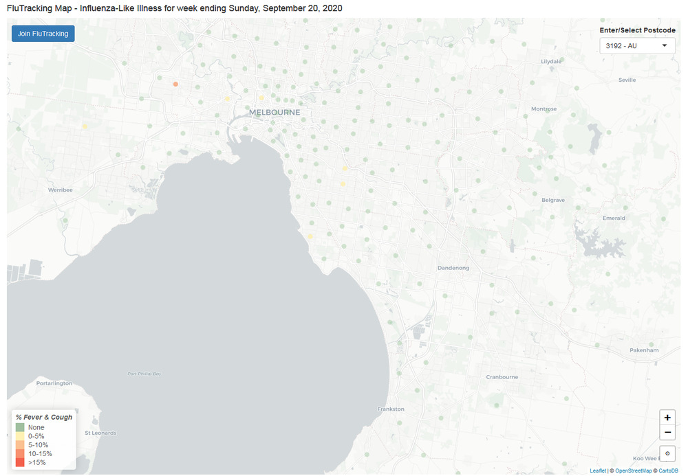 No reports of flu-like illnesses in Melbourne, except 2 reports in Sunshine, postcode 3020.