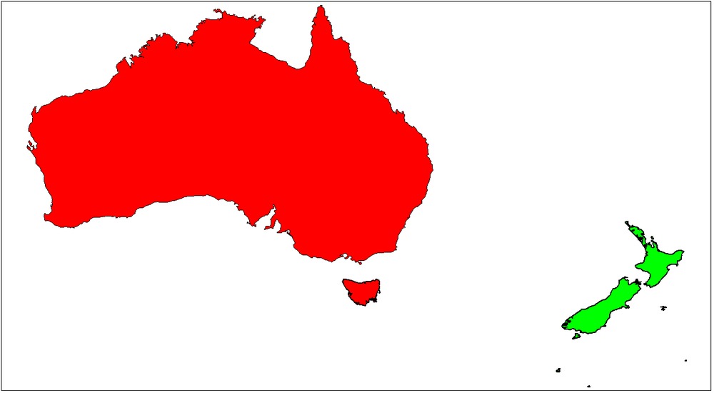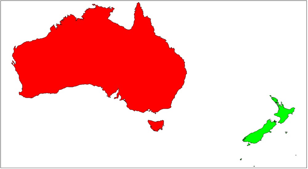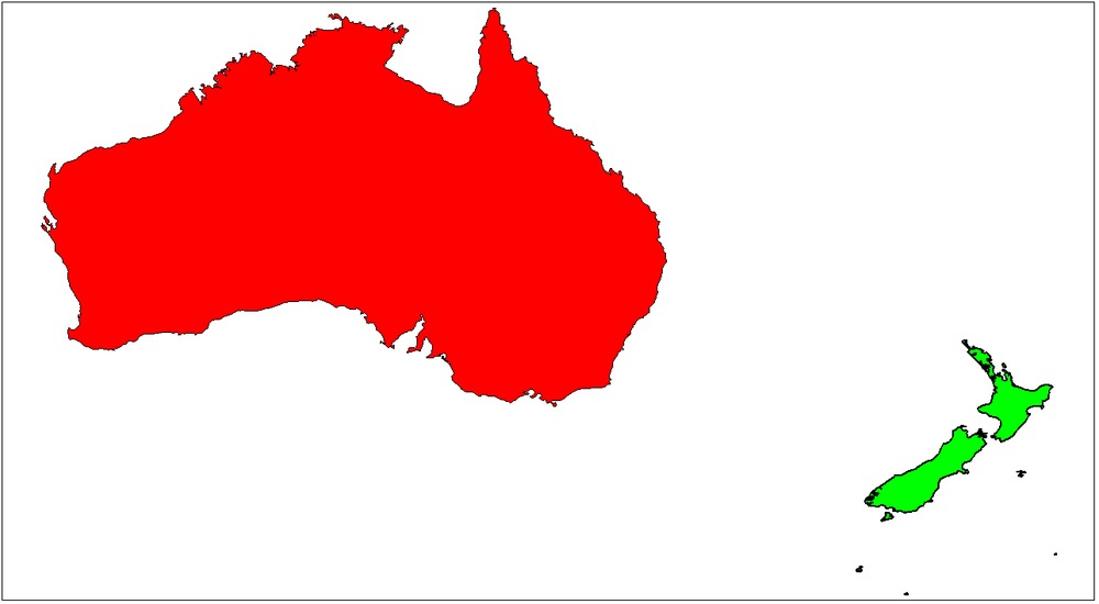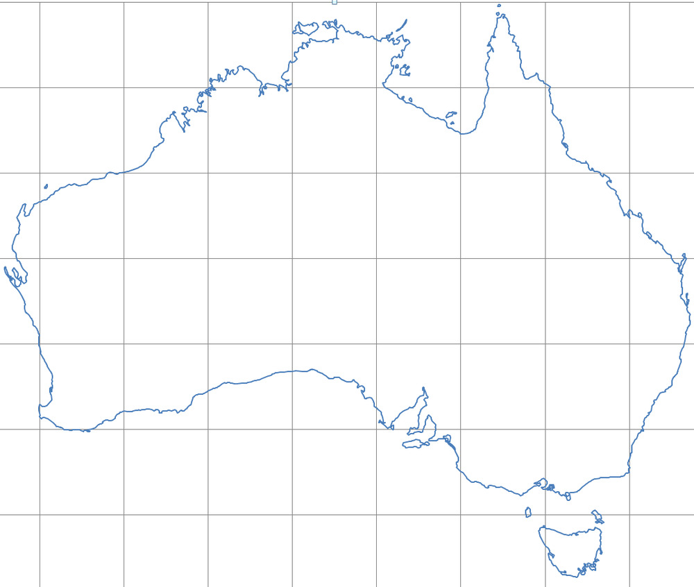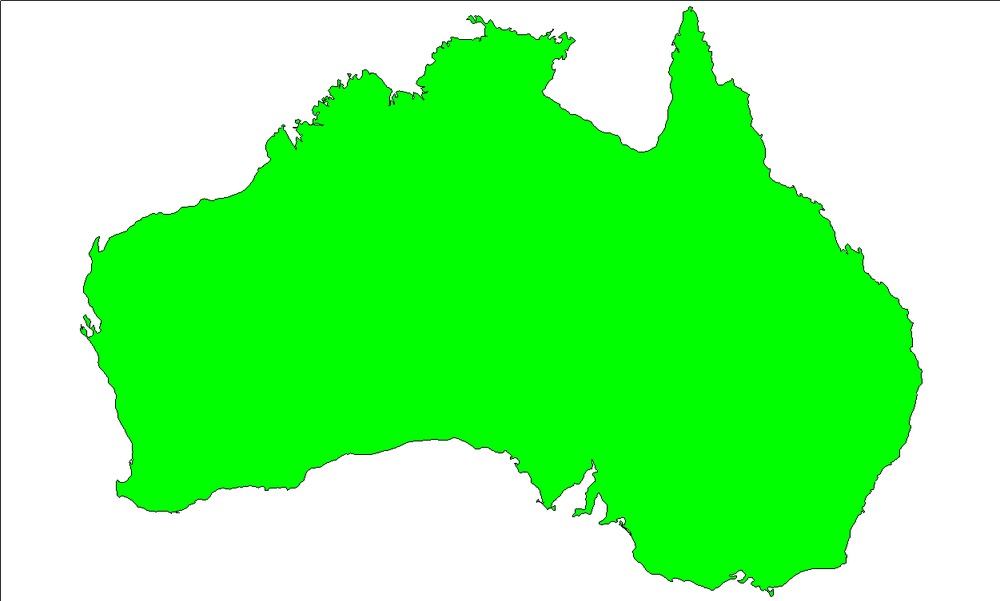 OK, so using the following as my model of Australia (map projection just latitude-longitude). It includes largest islands but misses Cocos-Keeling, Macquarie, Heard Island, misses most of the islands of the barrier reef and isn’t too accurate for Torres Strait, NT and Tasmanian islands. It also excludes the Coorong. It does include Phillip and French Islands in Westernport. Stay tuned for results.