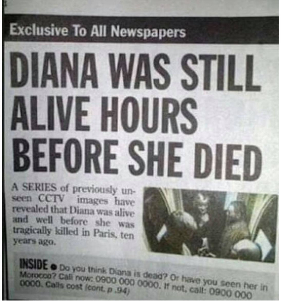 I have a theory that, that accident was set up and she is still alive and living in the middle east with her lover somewhere.