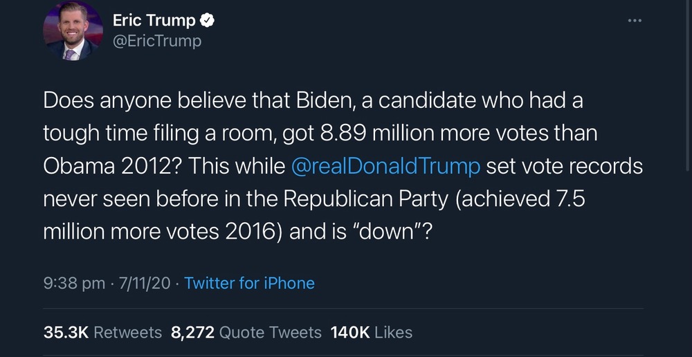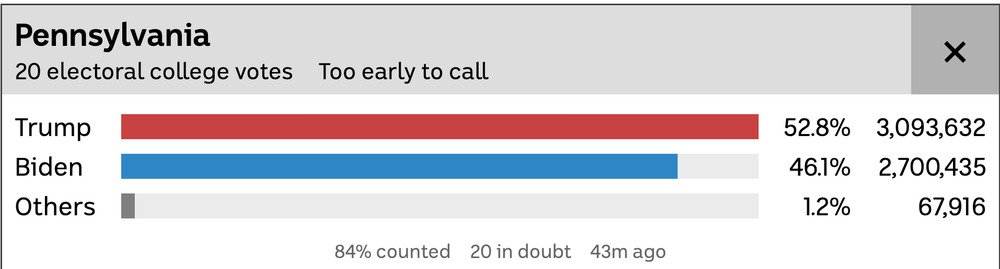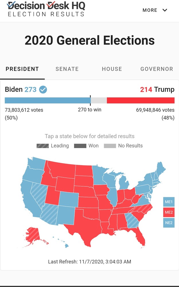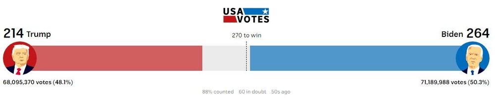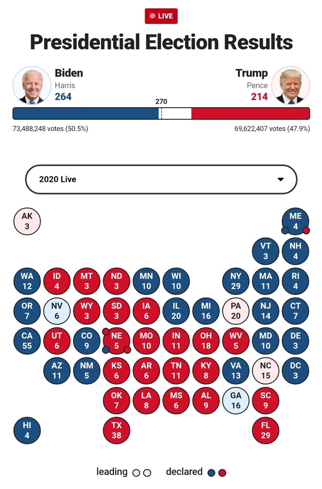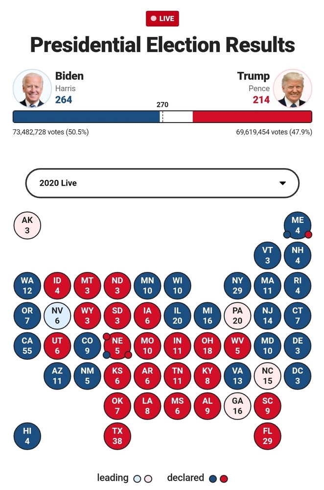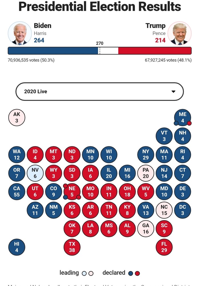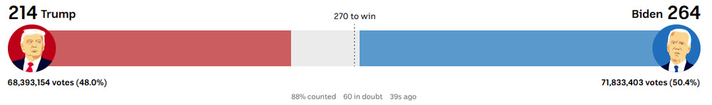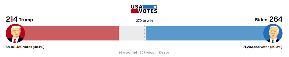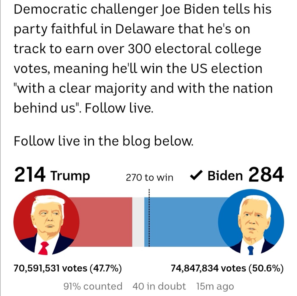 PermeateFree said:I thought the number was over 70 million to Trump and over 74 million to Biden. That is what Biden is also saying. And remember it is not the numbers of all voters that count, but the number of votes per State that counts and that difference is not great.