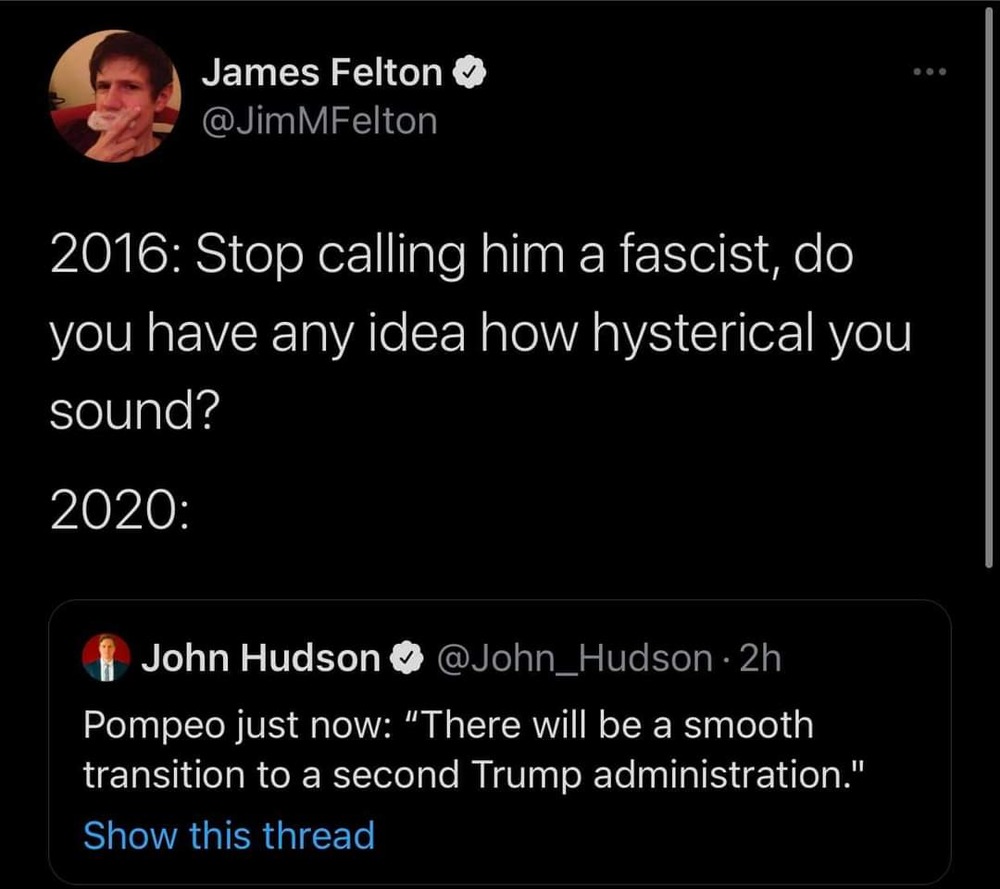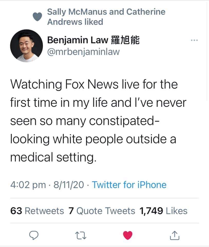 Good Lord they’ve got some deranged Trump fan on ABC News breakfast. “fake news; law and order, beating the pandemic, China virus’ …