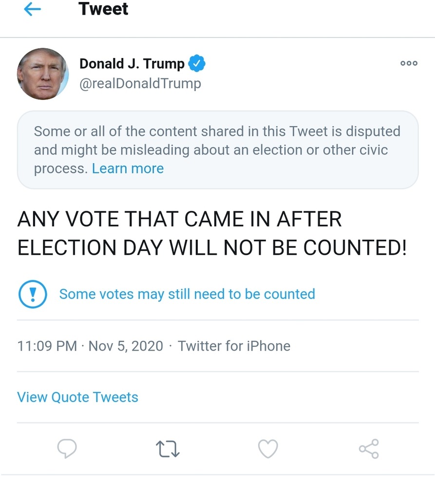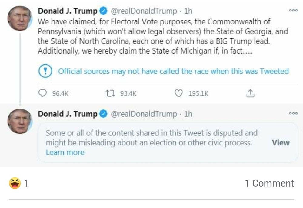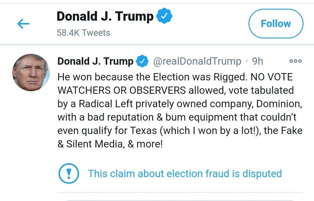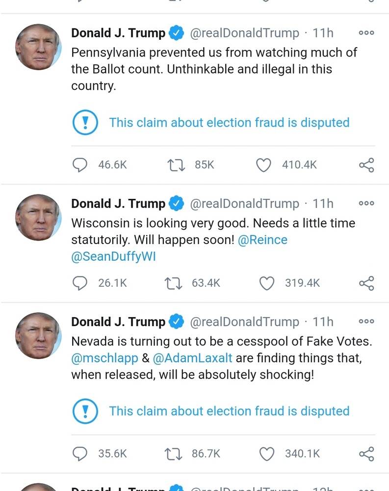 The President’s tweets in the last day indicate he may be approaching the realisation that he will not be in the White House beyond January 20th.