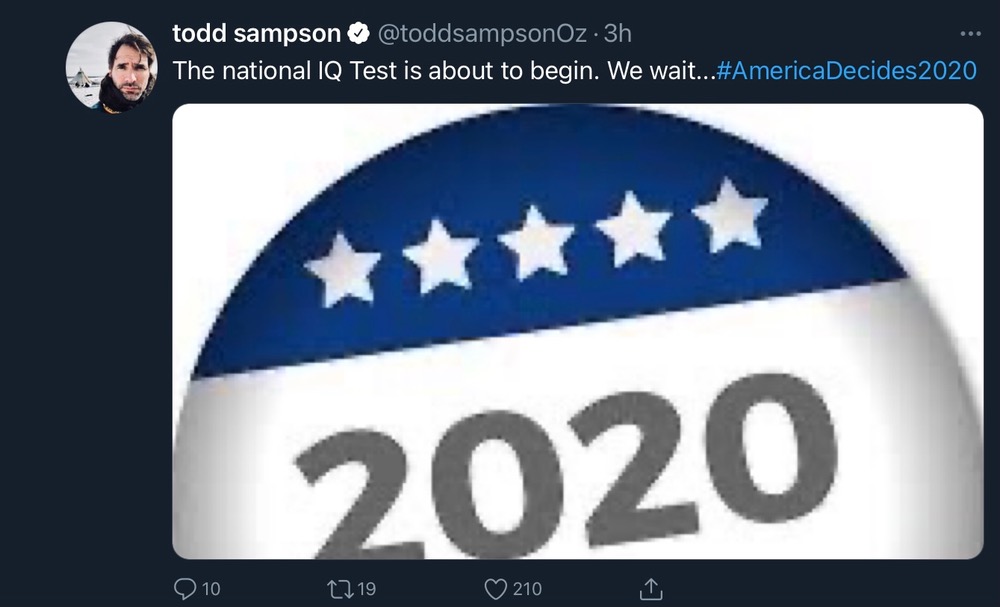 It’s not really US election day yet. They get our used days, and they haven’t got it yet.
