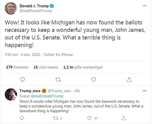 Do you remember the novelty text editors that would turn a web page into a movie script, or a horse race, or a porn novel? I propose that a new form of AI could be created that generates random sentences from ‘seed’ words in a Trumpian style. The research project would be to compare the output of the AI with the real thing.