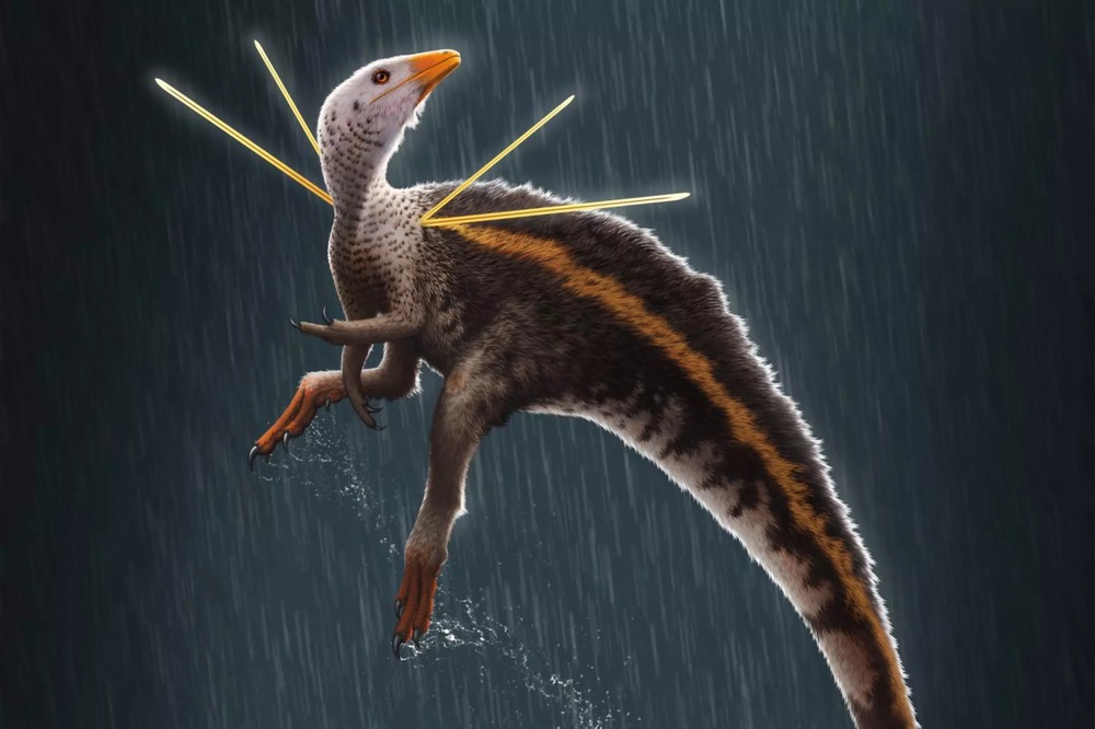 An artist’s impression of Ubirajara jubatus, a new species of dinosaur found to sport strange spikes most likely used for mating displays