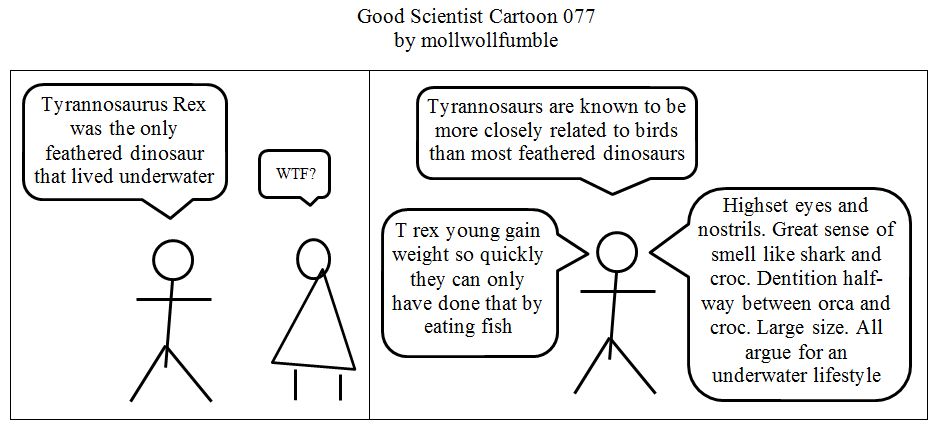 Some time ago I proposed that Tyrannosaurus rex was aquatic, based on the following features: