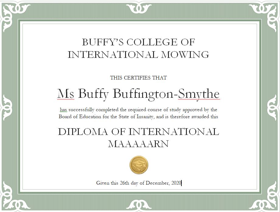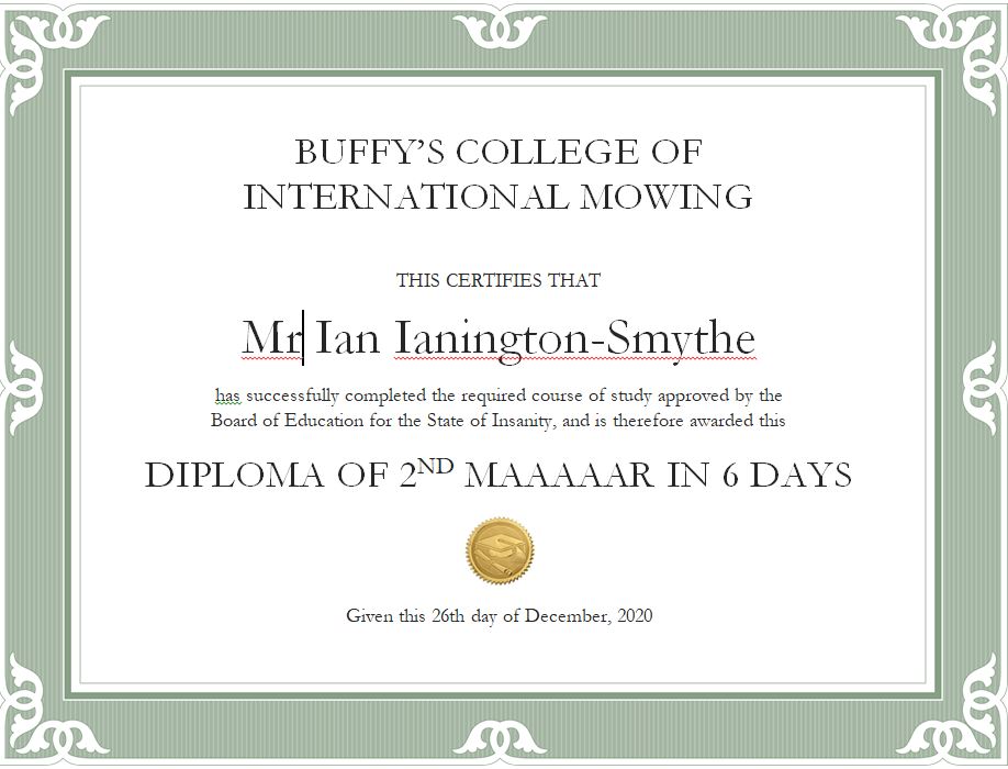 ā¦. and for Mr Ian, I award the Diploma of Maaarn Twice in 6 Days, for meritorious services to the cause.