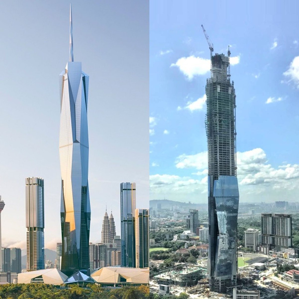 Merdeka 118 in Kuala Lumpa (118 floors, 664 m) is the tallest building in Asia. Construction nearing completion and to complete in 2021.