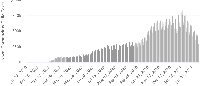 Really seems as though both cases and deaths are in a solid decline, worldwide and in most major countries.Deaths in the UK back down under 500 per day for the first time since Christmas. US deaths down to 2000 for the first time since early December.