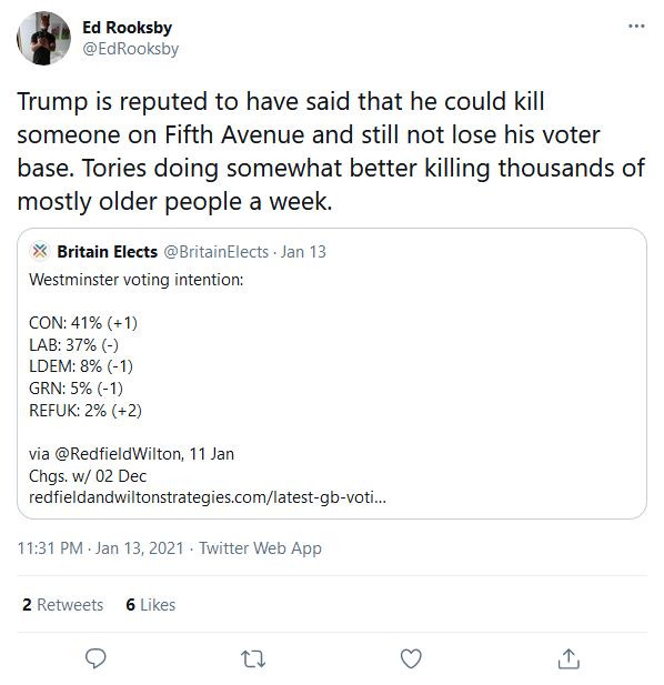 ah and all the Real Men back at home “working from home” are just satanic left wing cannibals or under their influence and we should be Letting It Rip For The Economy Must Grow and so forth