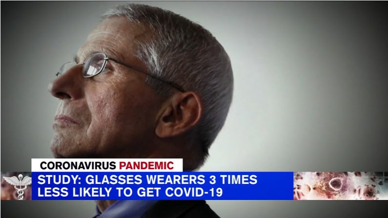 A new study out of India found people who wear glasses are three times less likely to get the virus. It involved 304 patients ranging in age from 10 to 80 years old.