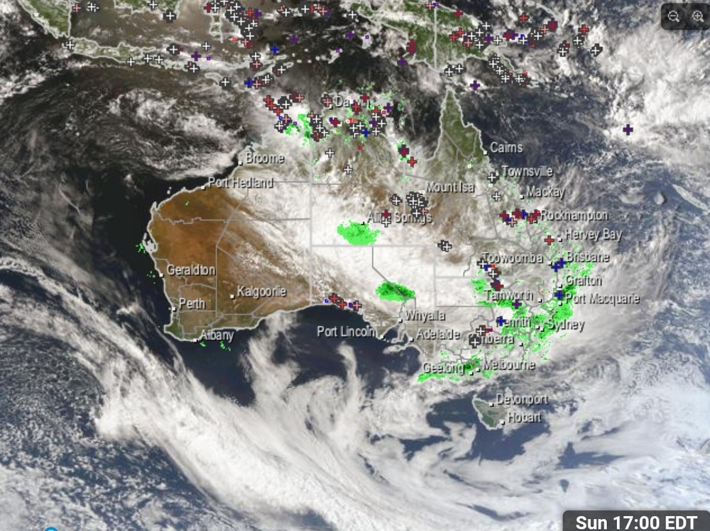 Met Bureau also predicting storms west of Canberra, and west of Alice Springs.I wonder whether Lake Eyre might start filling up again.