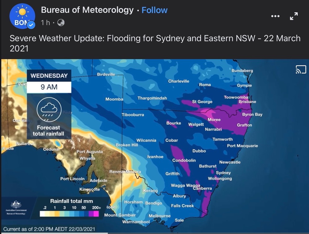 Steve (Primus) will be watching his back yard carefully, I reckon. (His block of land backs onto the river.)https://www.abc.net.au/news/2021-03-24/nsw-weather-live-updates-flooding-disaster/100024790