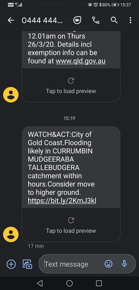 Apparently residents of Pimpama have been advised to get to higher ground north tip of the GC