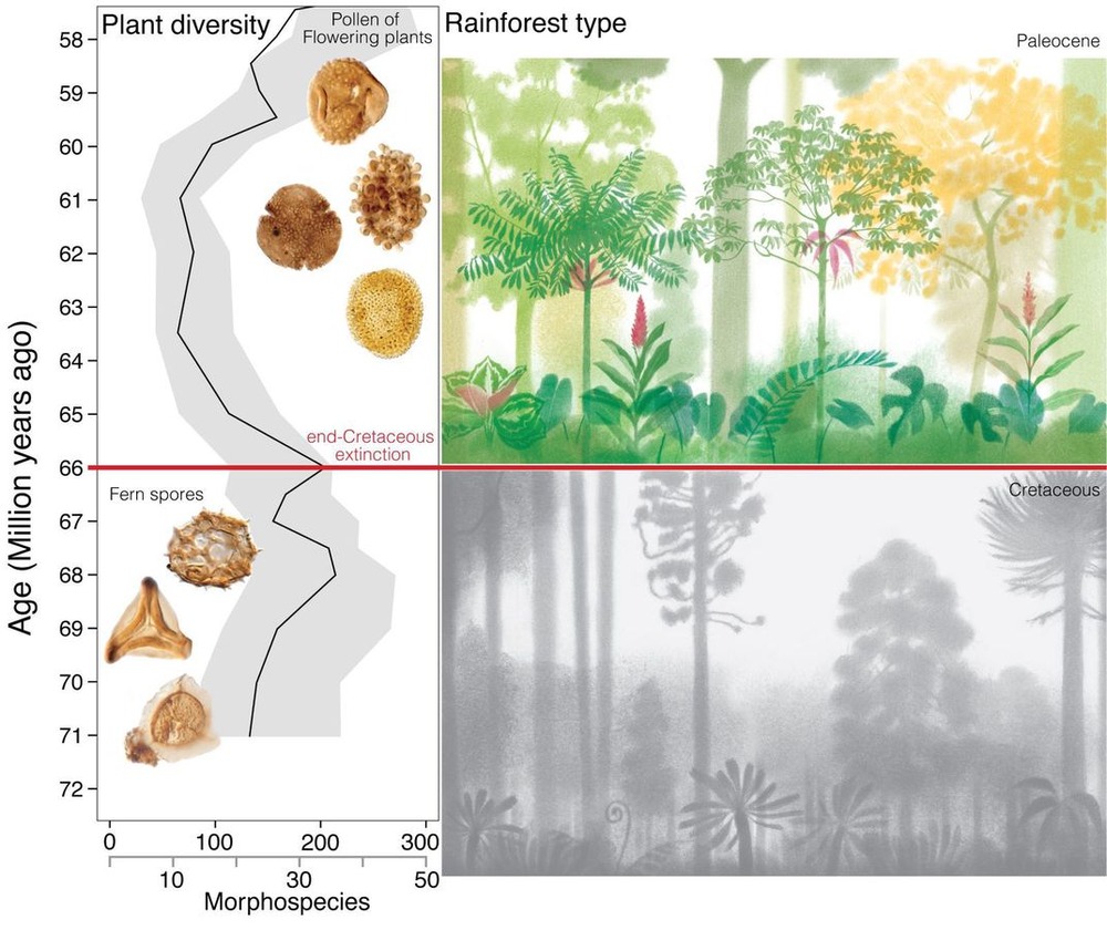The study, published today in the journal Science, uses thousands of fossilized remnants of South American flora from before and after the world-changing asteroid impact to reveal two very different forests on either side of a fracture in the history of life.