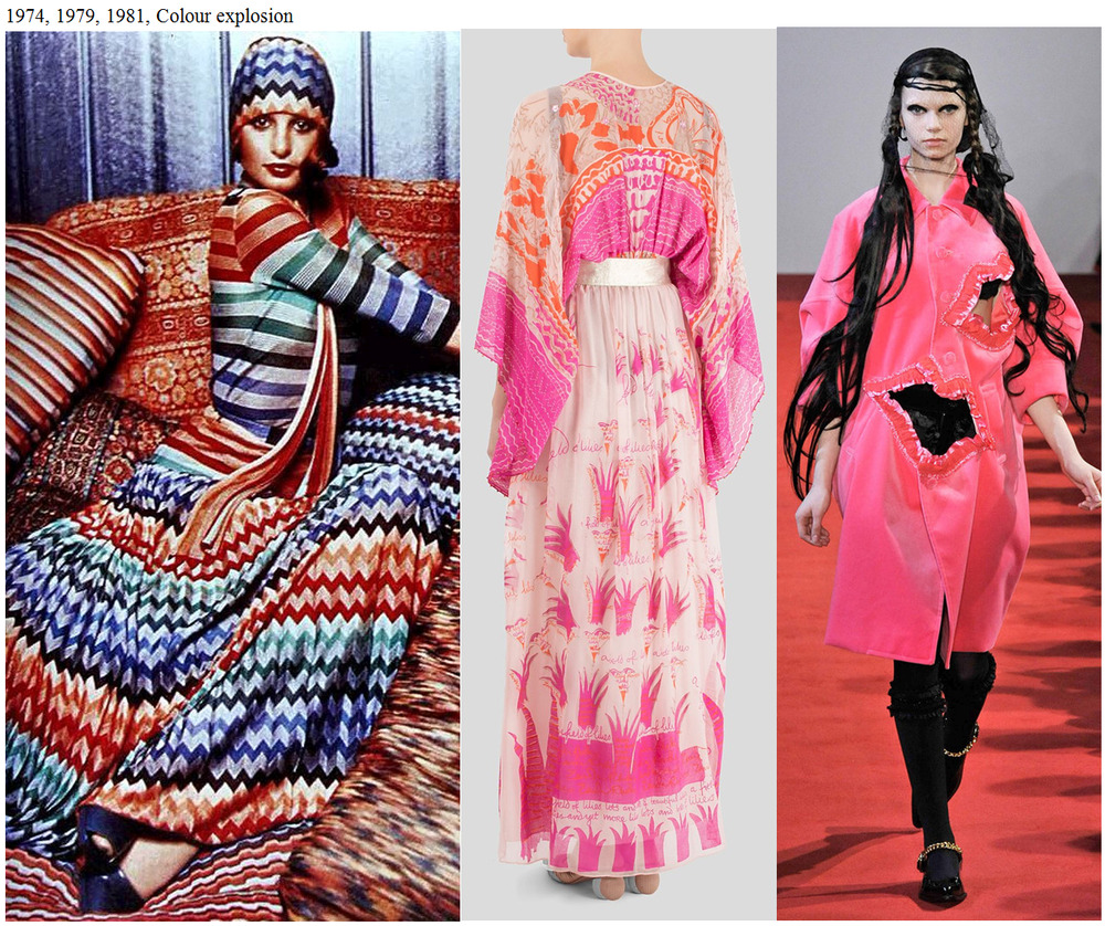 Simplicity itself. Like a dressing gown but sexy with b/w geometric patterns. The ultimate “go anywhere” dress. - 1974 Missoni. The mid-length knitted stripy