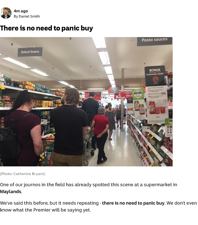 Like, we’d argue it’s quite rational behaviour without panic, indeed, possibly even nett social beneficial behaviour to prepare selves to bunker down as instructed.