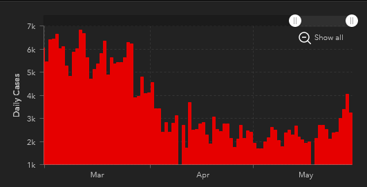The UK’s rate of new cases has just about doubled over the last week, from around 2000 cases per day last week to around 4000 in the last few days. They seem to be mostly the new Indian variant, but the Government are being a bit coy about that. Just when they are starting to ease restrictions too.