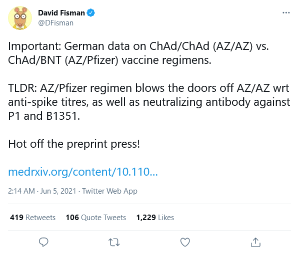 Good news for anyone who managed to dodge abulletrisk of stroke in exchange for poorly effective vaccine: using the other one after your 3 month waiting time is up, could make you as well protected as if you’d done it the effective way in the first place ¡