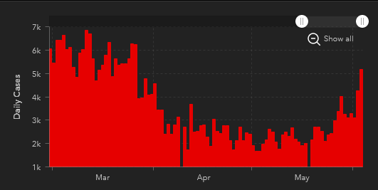 This week, the rate of registered new cases reached as high as 1,500 a day, compared to 178 a day on May 1.