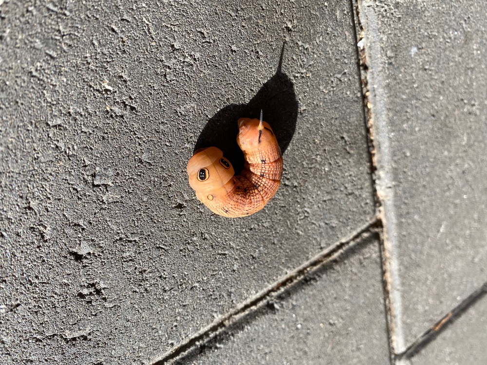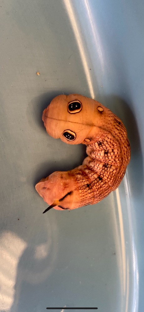 It looks like what I used to call “privet caterpillar”, but strange colour. No, I’m not close enough.