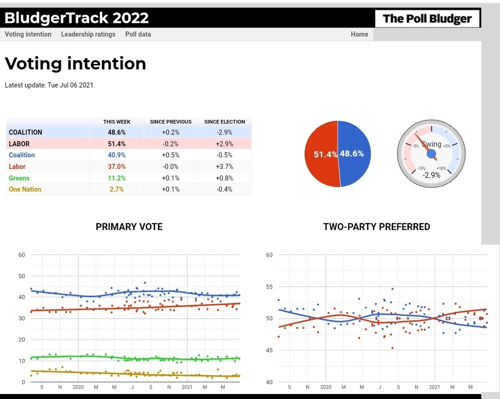 Yesterday’s polling average has Labor 2.8% ahead so we will probably not see an election till next year.