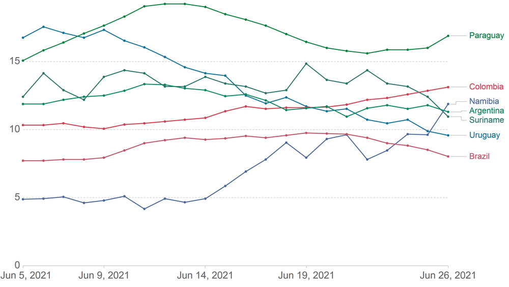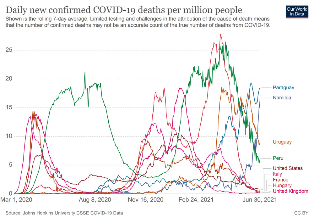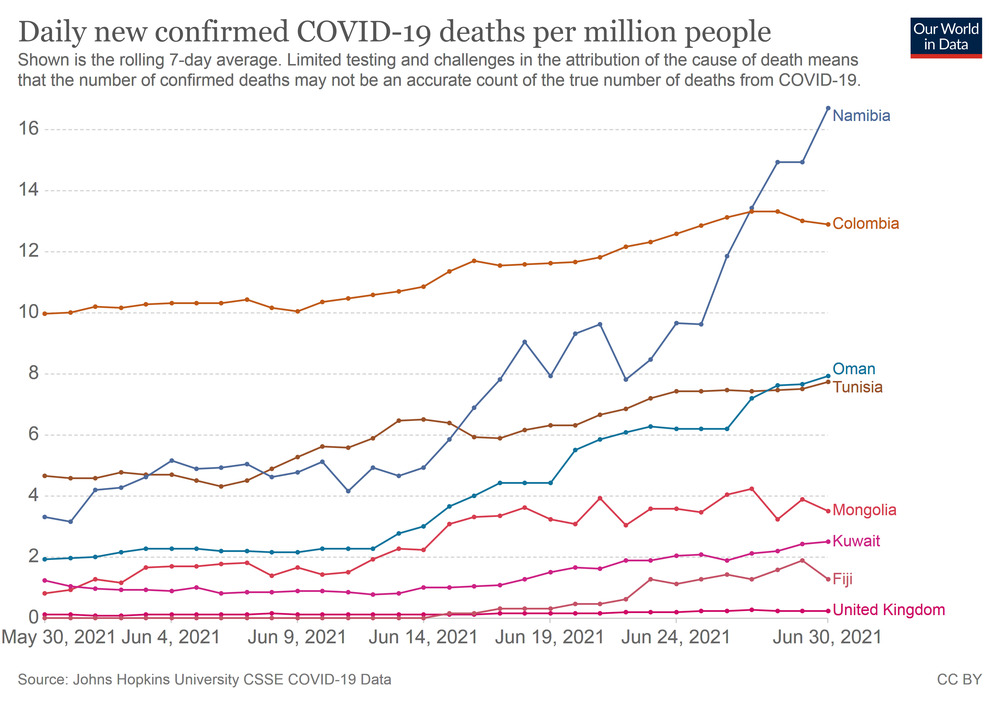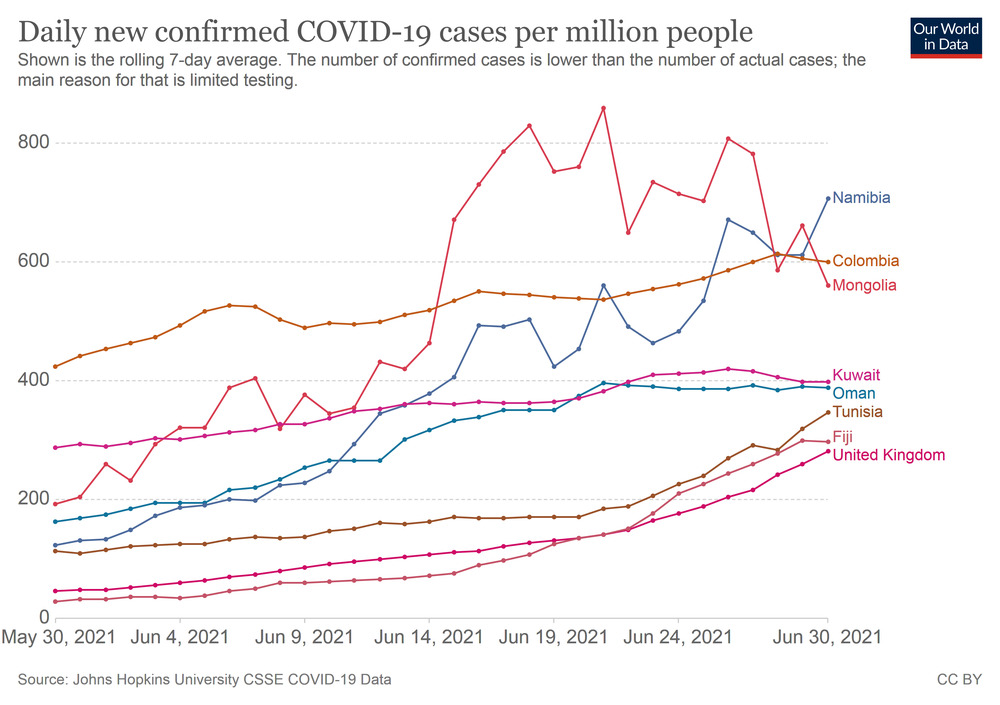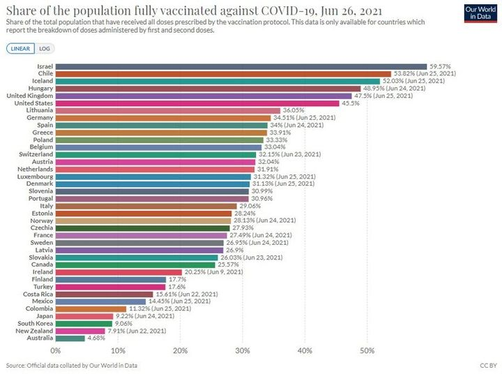 Rich countries, including Australia, Japan and South Korea, where the first wave was largely avoided and vaccination has not been a high priority now look highly vulnerable. By the end of June the risk of Delta had seen almost half of Australia put under lockdown orders. Delta is the dominant strain in Russia, where a vaccination rate of 12% and misinformation-driven vaccine scepticism seem set to make its spread easy.