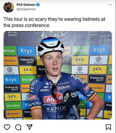 the riders are on a go-slow “protest” ride at the moment, after yesterday’s crashes.