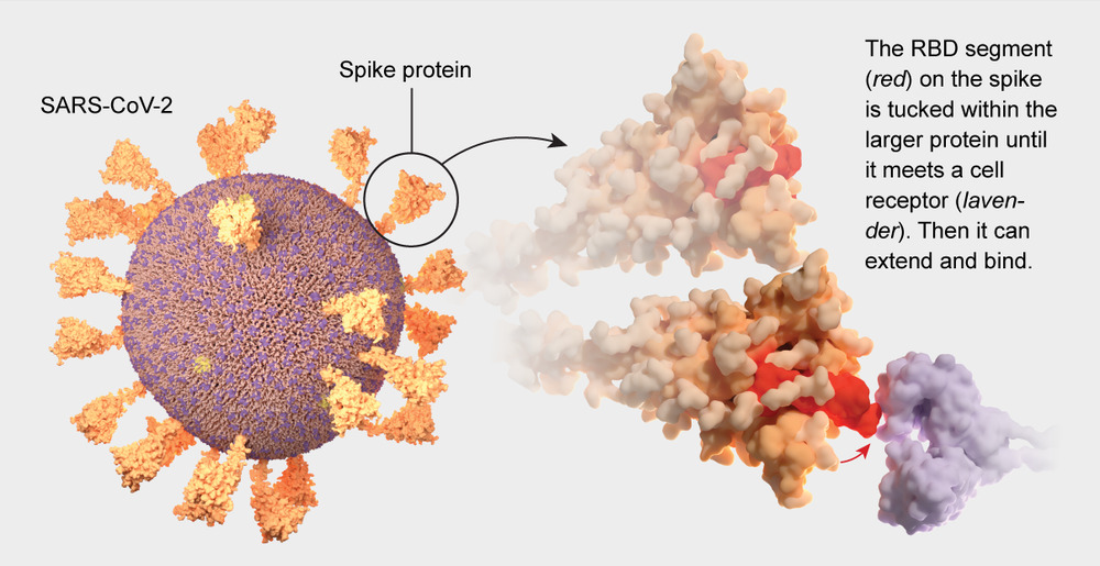 > the RBD is periodically hidden by other parts of the spike protein, shielding the domain from antibodies looking to bind to it. This blunts the immune response.