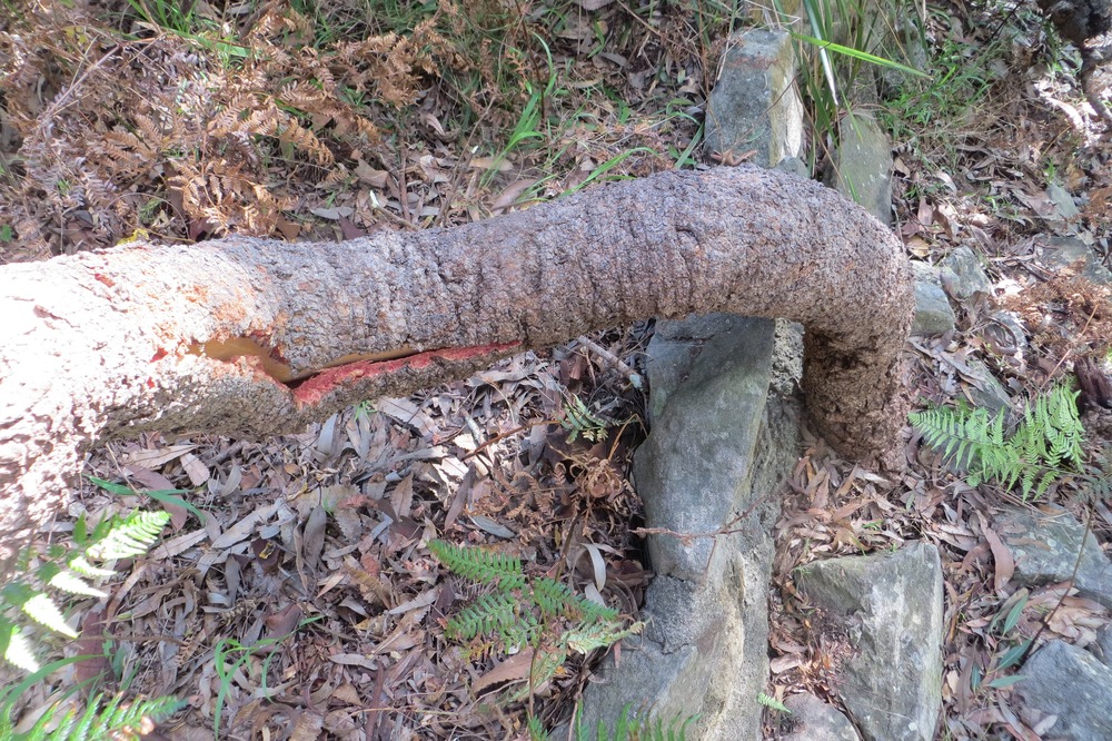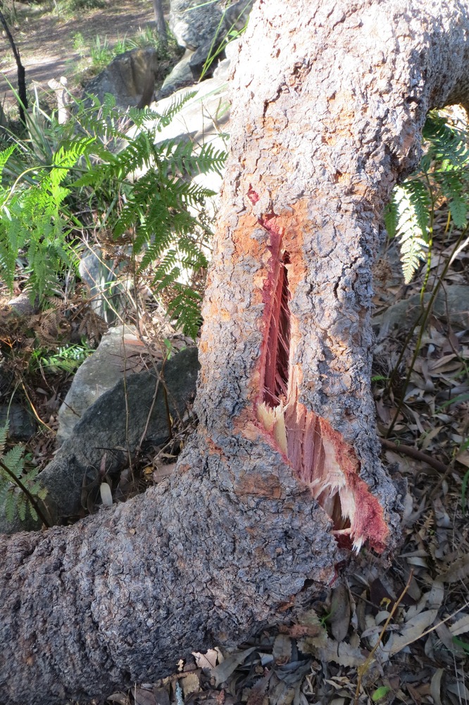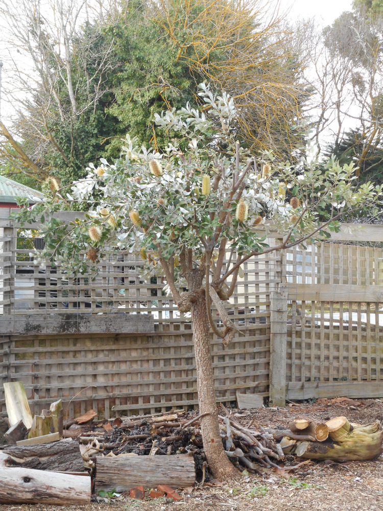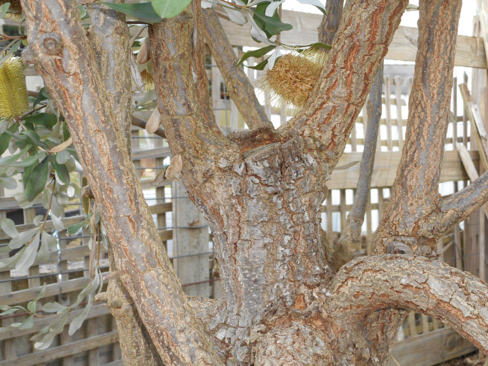 You may remember my very large Banksia Serrata that snapped in the wind some time ago. Part of it survived and continues to do well, however, growing underneath it was another old banksia which we named “Son of Banksia”. When Banksia lost its top half, poor Son of Banksia lost much of its protection, and yesterday in the strong wind it slid from the top of the 1.2m fence that it had always leant against, and twisted near its base. This twist has separated much of its bark from its core, and most of its trunk is now flat against the ground. There is no green growth below the twisted section. It has fallen into a better location than it had previously been growing, so if possible, I’d like to help it to survive. Can it be done?