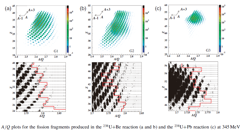 A 238U beam was fired at two targets in different experiments. “Beryllium because the so-called abrasion-fission (AF) process is more favorable for the production of isotopes in the Z ~ 30 to ~40 regions” and “a lead target, because the Coulomb-fission (CF) process that leads to asymmetric fission is more favorable for the production of isotopes in the Z ~ 50 region.”