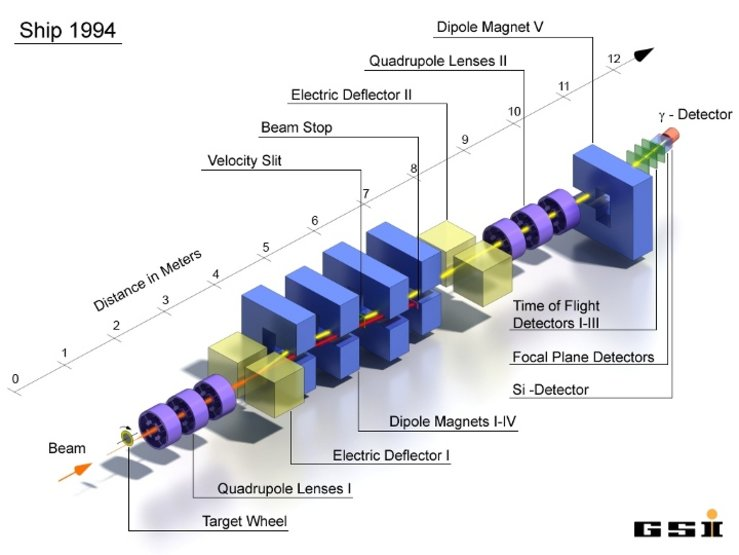 From wikipedia. “The UNILAC was commissioned in 1975; the SIS 18 and the ESR were added in 1990 boosting the ion acceleration from 10% of light speed to 90%.” The FRS, also used in the present paper, is the fragment separator. ESR, the experimental storage ring, is not used in the paper; it is used for accurate measurements of decay energies of new radioactive ions trapped in the ESR ring.
