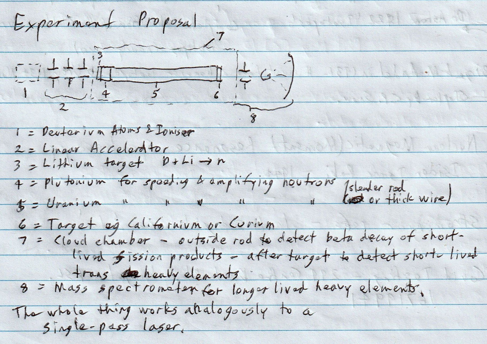 I have one other suggestion myself. Try to recreate the “r-process” of element creation (found inside supernovas and hydrogen bombs) by bombarding unstable ions with a massive flux of fast neutrons.