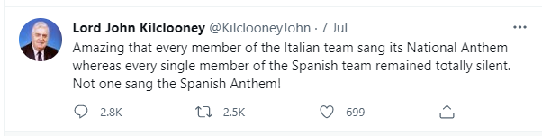 Well, I actually stood throughout the Olympic Anthem, because I went and had a piss.
