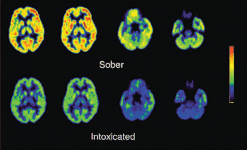 Fluorine-18 measuring the difference in brain activity between sober and drunk.