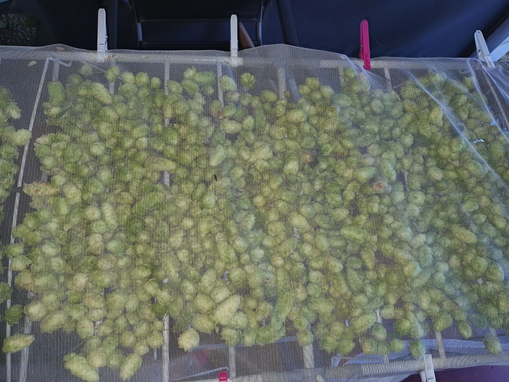 For those interested 6kg of picked hops dried down to approximately 1.2kg.