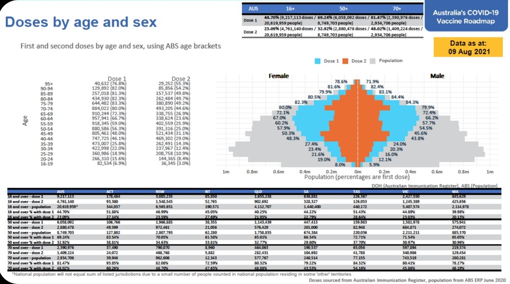 “……..said lockdowns would continue to be used to fight Delta outbreaks until vaccination thresholds of around 70 per cent of the population were met”