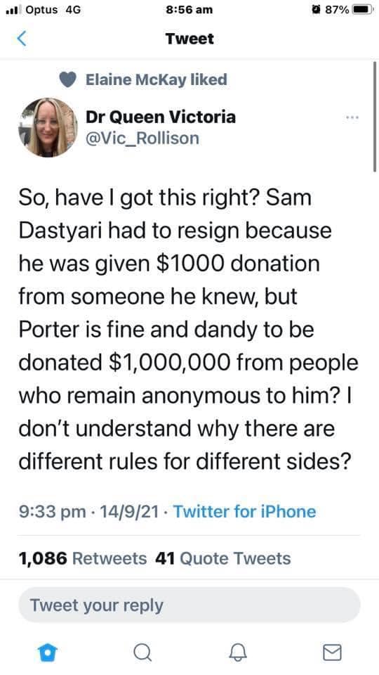 David Speers gives a bit more information on Sam Dastyari. The Porter secret money still appears to be a lot more though. And more secret.https://www.abc.net.au/news/2021-09-16/christian-porter-blind-trust-legal-bills/100464856