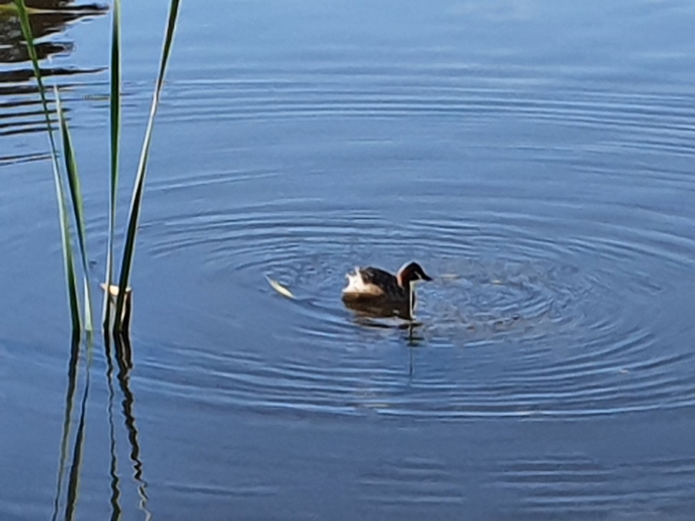 This cute duck swimming around in a pond this morning was about a quarter of the size of the other native ducks.