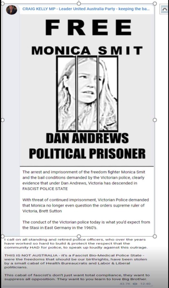 Police arrest Australian-born conspiracy theorist Karen Brewer in Kaikohe and Reignite Democracy Australia leader Monica Smit in Melbourne, in separate incidents