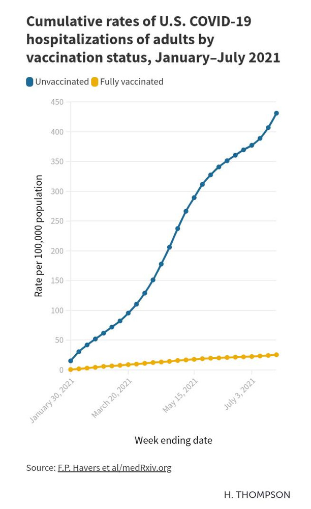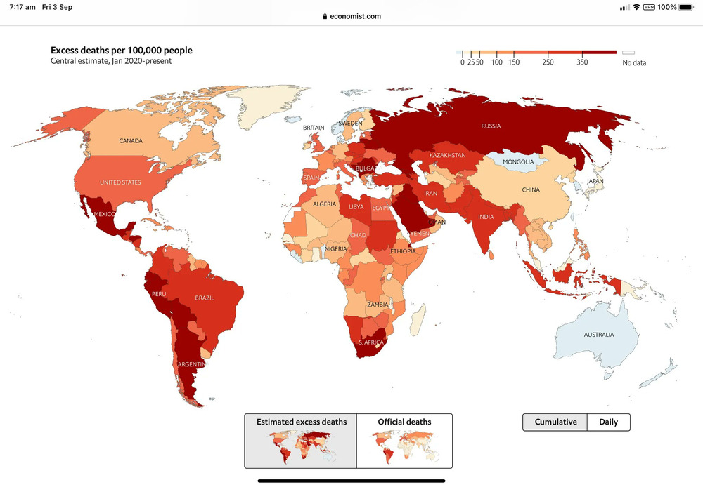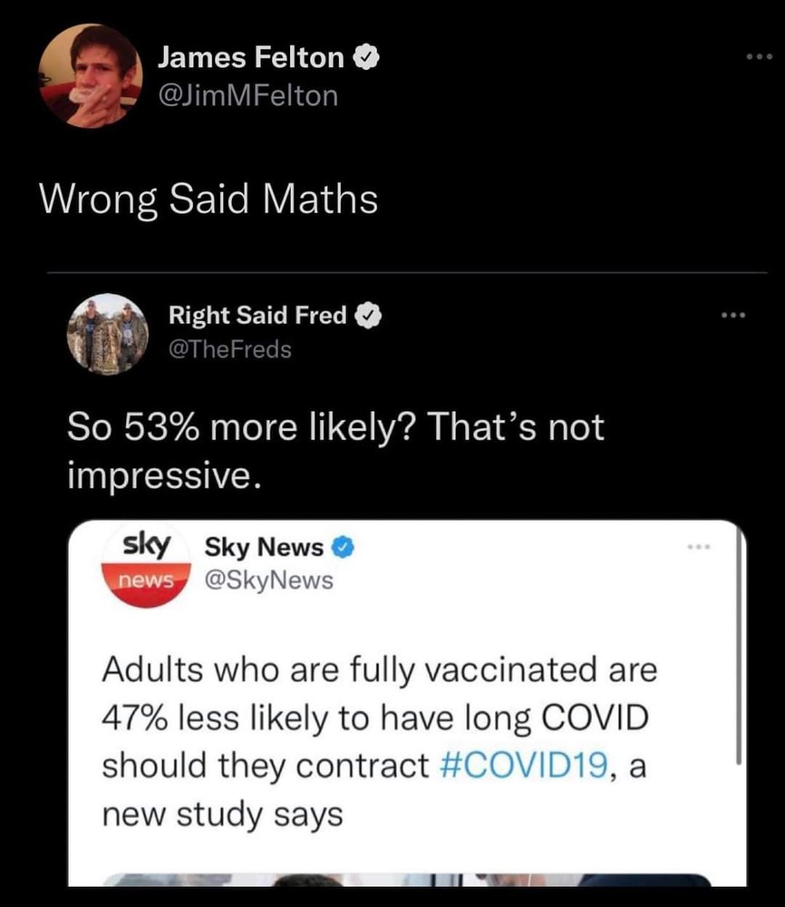 Anyone got any idea where this comes from? Why would immunity derived from infection be less effective than immunity from vaccination? I don’t think the Delta version has been around long enough to really know whether immunity to it is long term or not. I haven’t looked particularly hard, but the bits of research I’ve seen reported suggest immunity after infection (or at least antibodies in the blood) lasts months and months, possibly years. (Although again, it’s a bit early at 18 months since ground zero to know much about the long term)