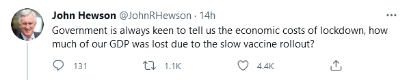 On the other hand, a 0.1% vaccination level, if the vaccines are given to the right people, is completely effective when combined with border security, as we’ve seen in China. In Australia, the governments are so stupid that we’ve seen a large number of instances where the vaccine has not been given to the right people, the super-spreaders.