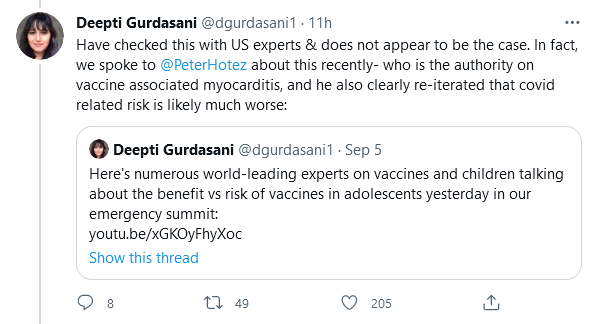 She says however, that “natural immunity to Delta or any virus is less effective than a vaccine in terms of long-term immunity”.<<